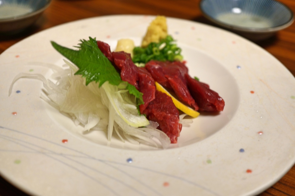 馬刺し。熊本復興の願いを込めて、熊本名産の馬刺し。